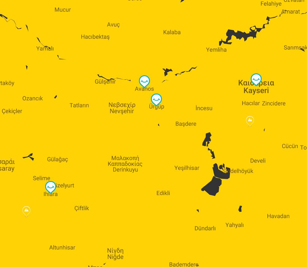 με την υπόγεια πολιτεία Μαλακοπή (Ντερίνκουγιου), που είναι σκαμμένη περίπου 80μ.